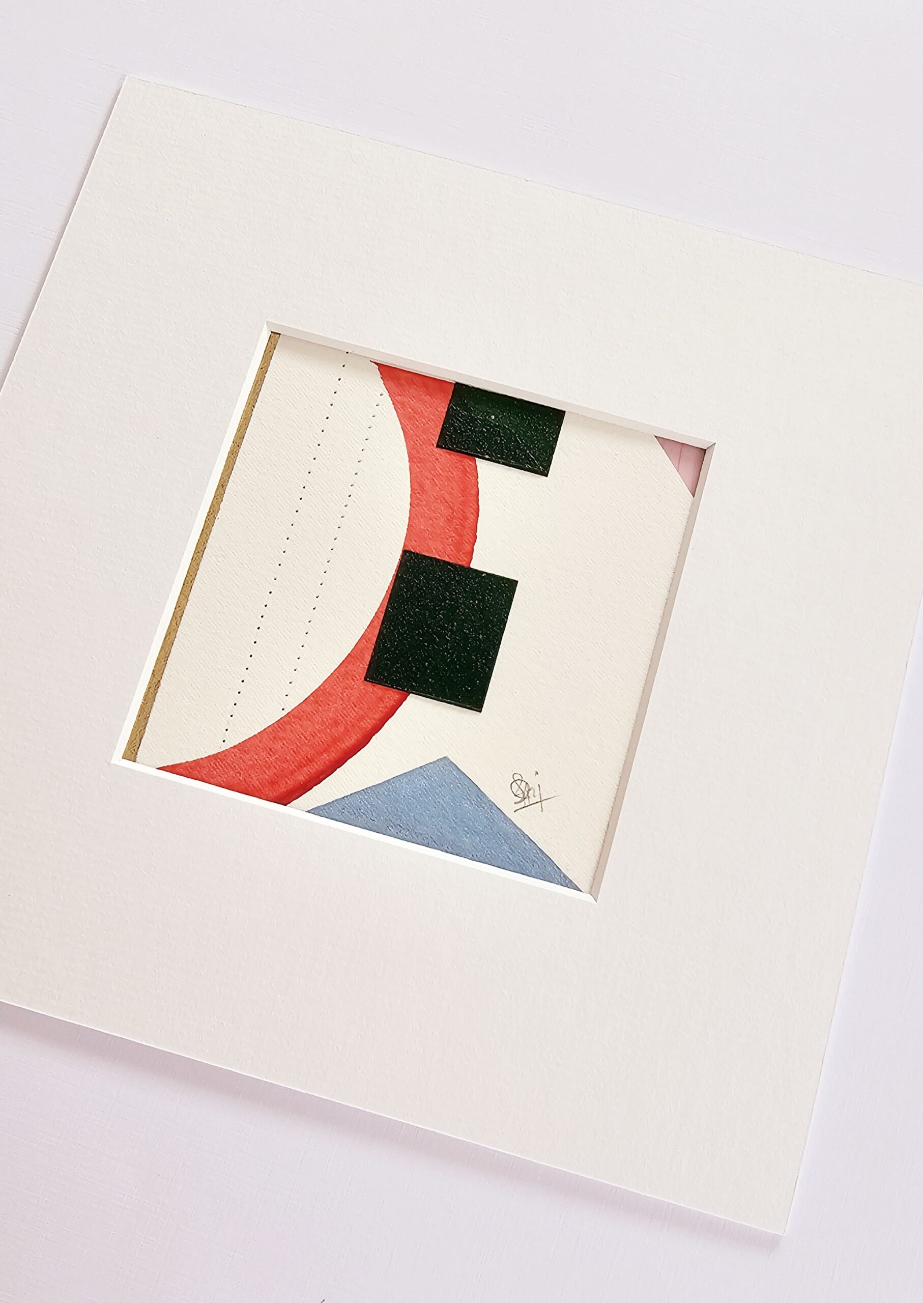 The mount board shown in the photo is for display purposes only. This piece is sold unframed and without a mount. A white mount with a 5cm border (total size: 20cm x 20cm) is recommended for best presentation.